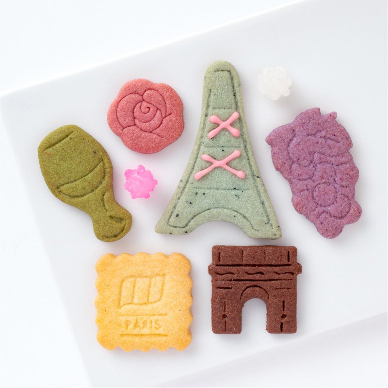 ワイングラスやエッフェル塔など、パリの素敵を詰め込んだ華やかなサブレを詰め合わせました。