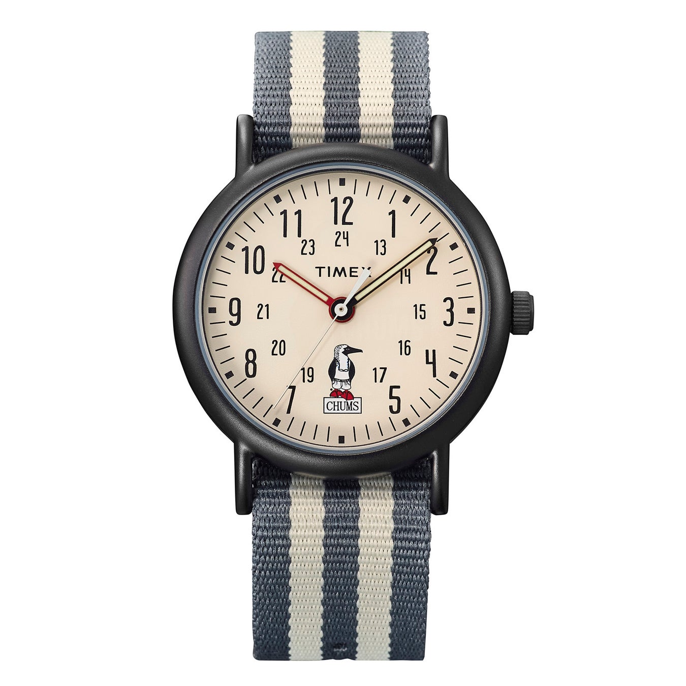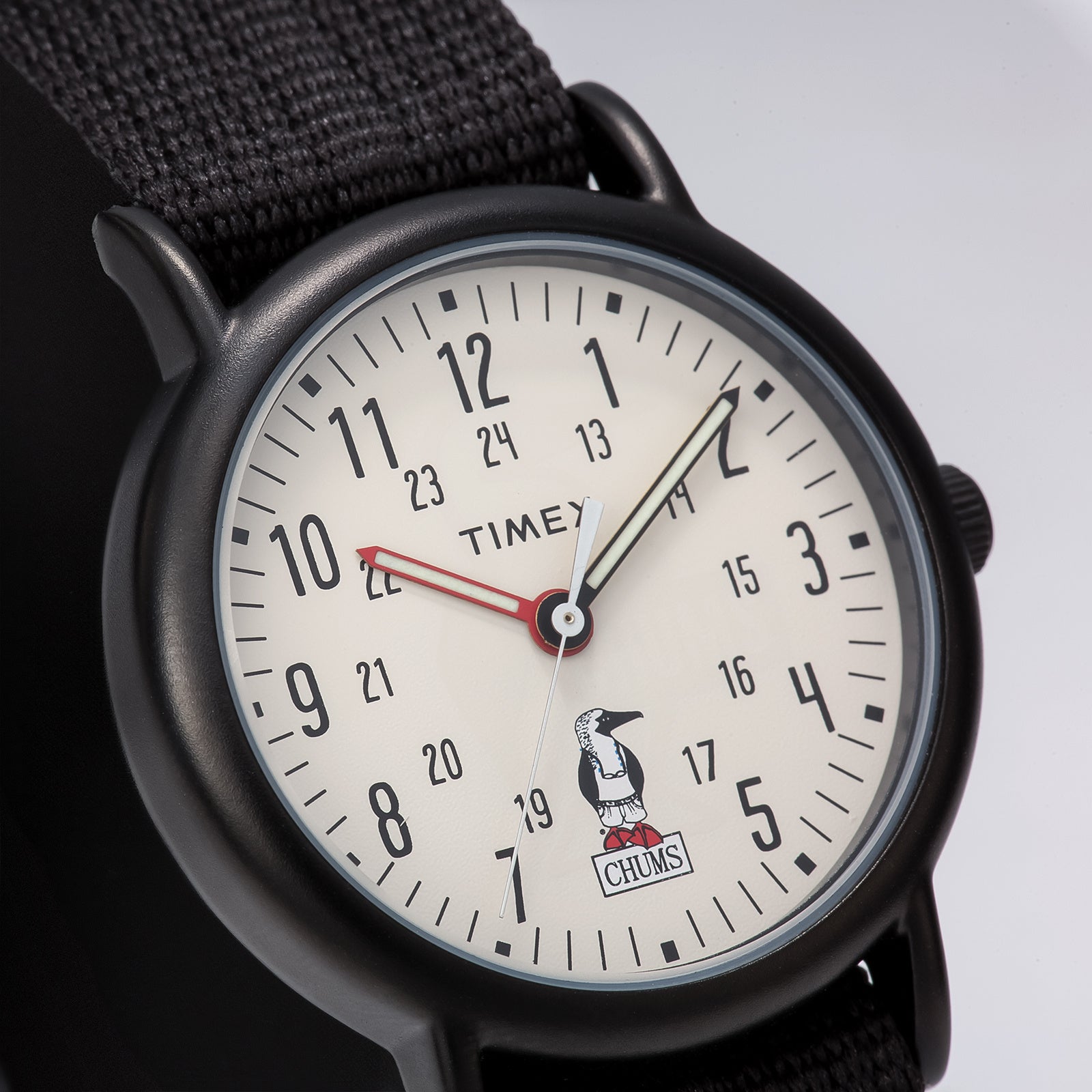 商品名はCHUMSの合言葉「HANG WITH YOUR CHUMS!」(チャムスと一緒に楽しもう)とTIMEXの名作「WEEKENDER」を掛け合わせて誕生しました。