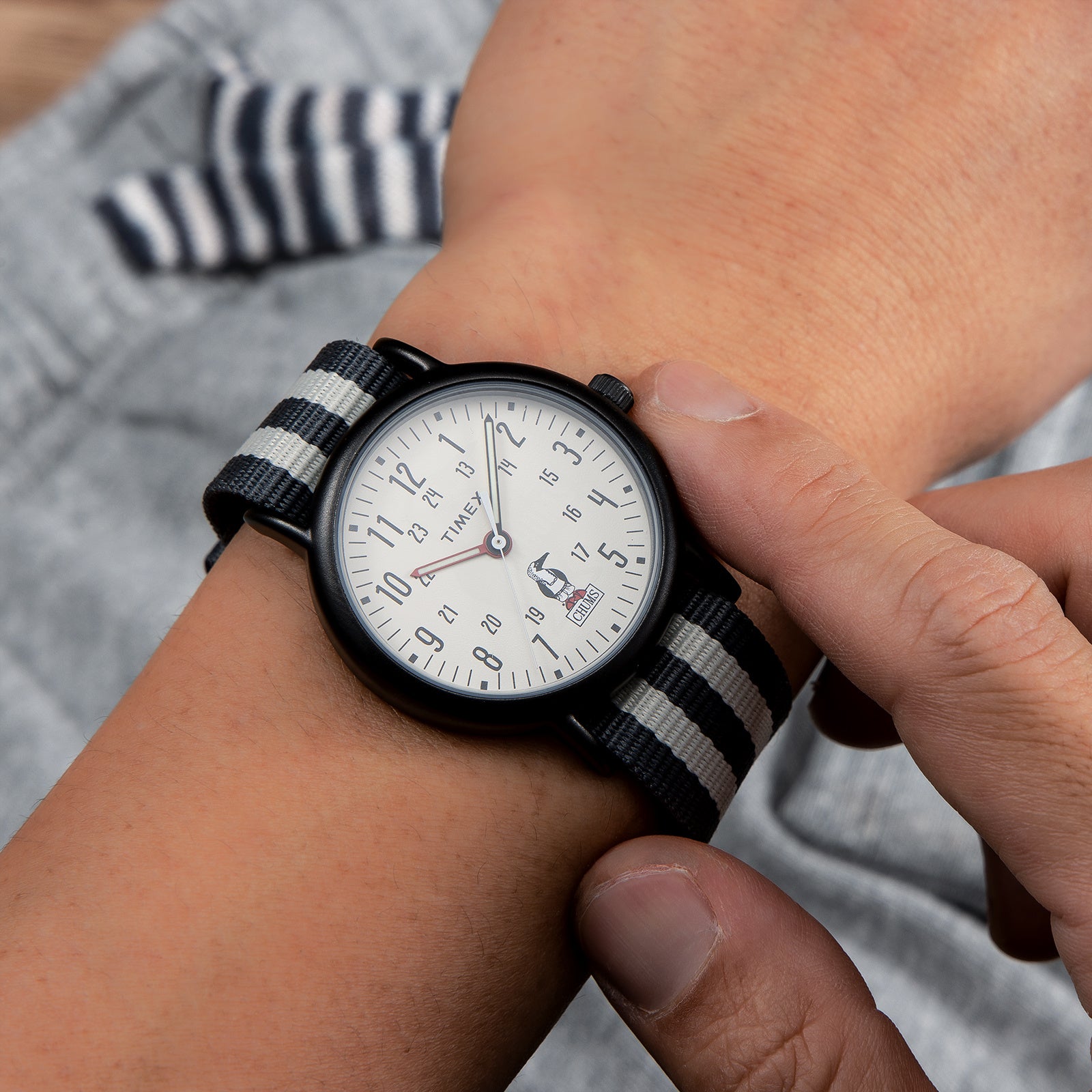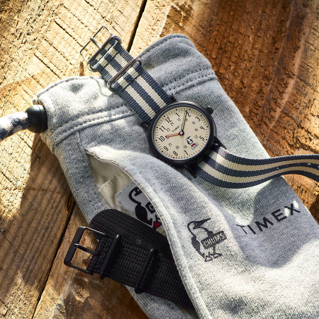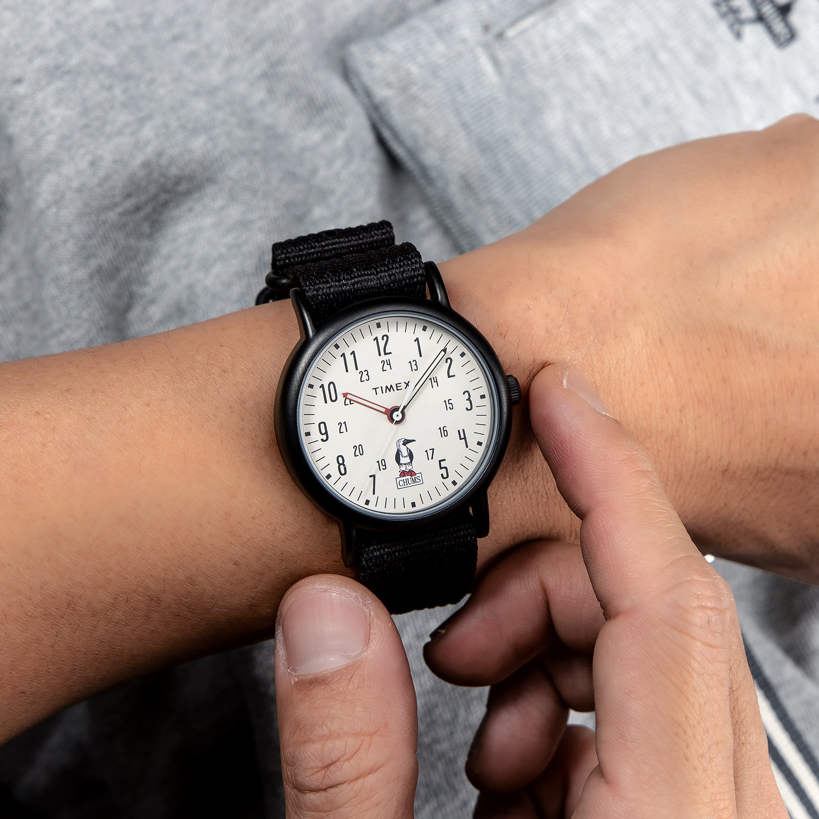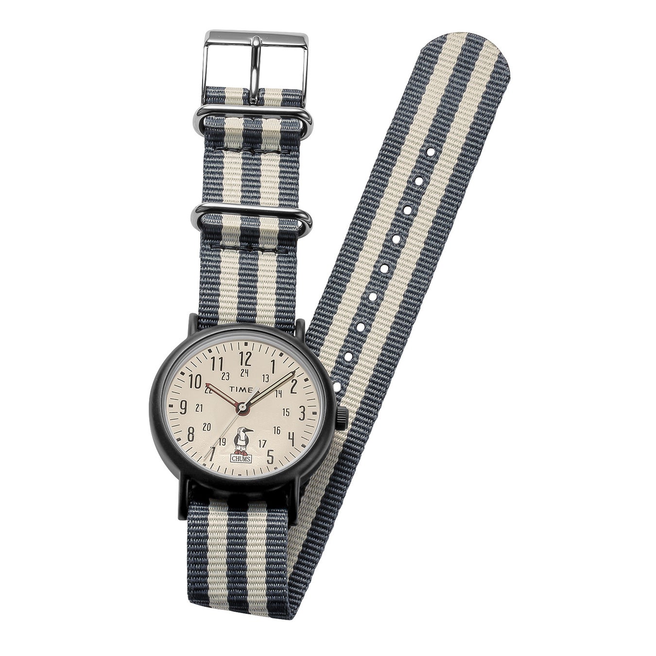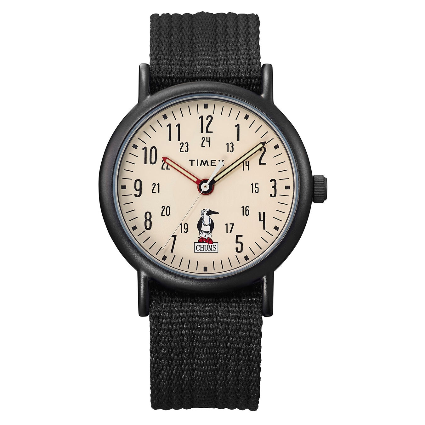 今回はTIMEXの定番モデル「WEEKENDER(ウィークエンダー)」。休日に仲間や家族とアウトドアやキャンプを楽しむCHUMSにぴったりなモデルです。