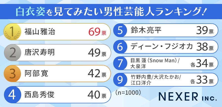 続いて「白衣姿を見てみたい男性芸能人ランキング」を理由とともに発表します。