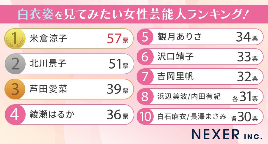 まずは「白衣姿を見てみたい女性芸能人ランキング」を理由とともに発表します。
