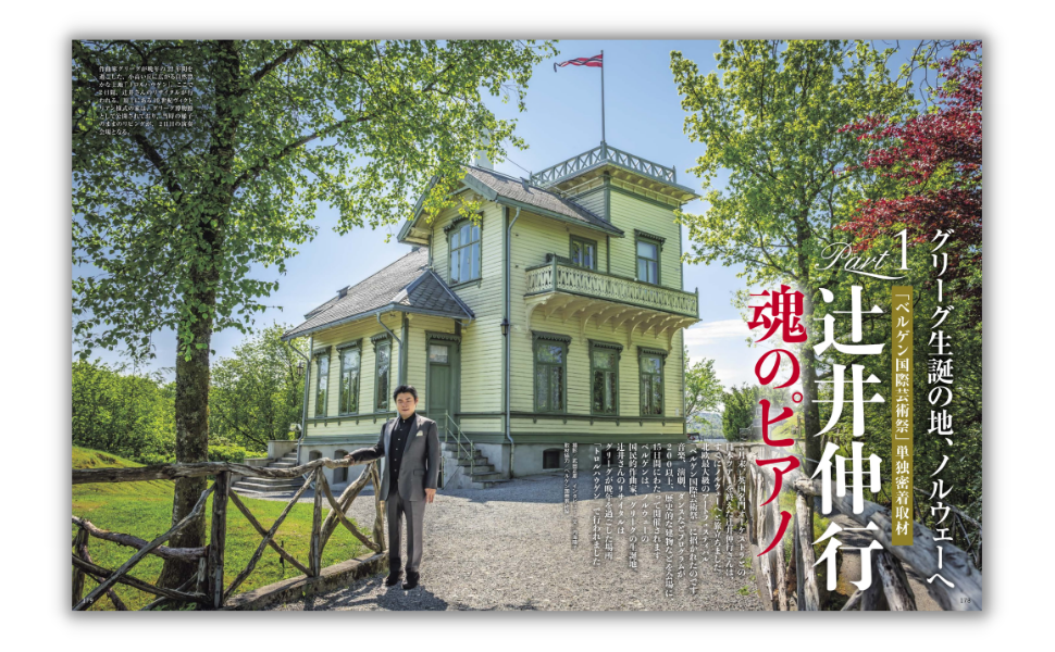 5月末、英国名門オーケストラとの日本ツアーを終えた直後にノルウェーへと旅立ち、北欧最大級のアートフェスティバル「ベルゲン国際芸術祭」に出演したピアニスト・辻󠄀井伸行さんを単独密着取材。ノルウェーの国⺠的作曲家、グリーグの生誕地であり、晩年をすごした場所「トロルハウゲン」でのリサイタルの様子は必見。躍動感あふれるビジュアルと、辻󠄀井さんの肉声とともにお楽しみください。Part2では今、話題の天才マエストロ、クラウス・マケラ氏独占インタビューを掲載。この10月には日本で辻󠄀井伸行さんとの共演も予定されています。