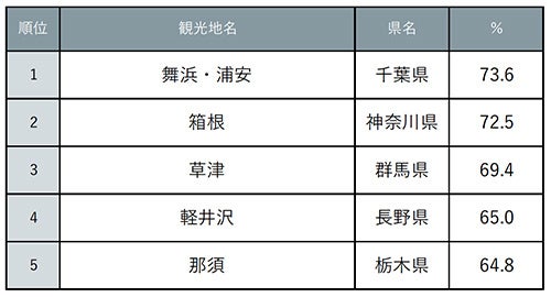 首都圏からアクセス良好で、観光名所やグルメが充実している温泉地エリアがランクイン。