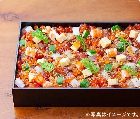 宮崎でお寿司と言えば、このお店の名が出るほど、地元では有名な高級寿司店。外の庭が見える大きな一枚ガラスで四季を感じられるカウンターなど、雰囲気のある店内で、宮崎の食材にこだわった海と山の恵みを織り交ぜた料 理が人気です。今回は、厳選された食材を豊富に使った、当店自慢のちらしずしをお楽しみください。お土産などにも喜ばれるひと品です。