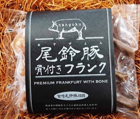 宮崎県の銘柄豚“尾鈴豚”は、身の締りがよく、際立つ脂身の甘さが特徴です。オールポークの粗挽きフランクフルトは、骨付きなのでワイルドに楽しむ事ができます。バーベキューや食卓を飾るのにぴったりの一品です。