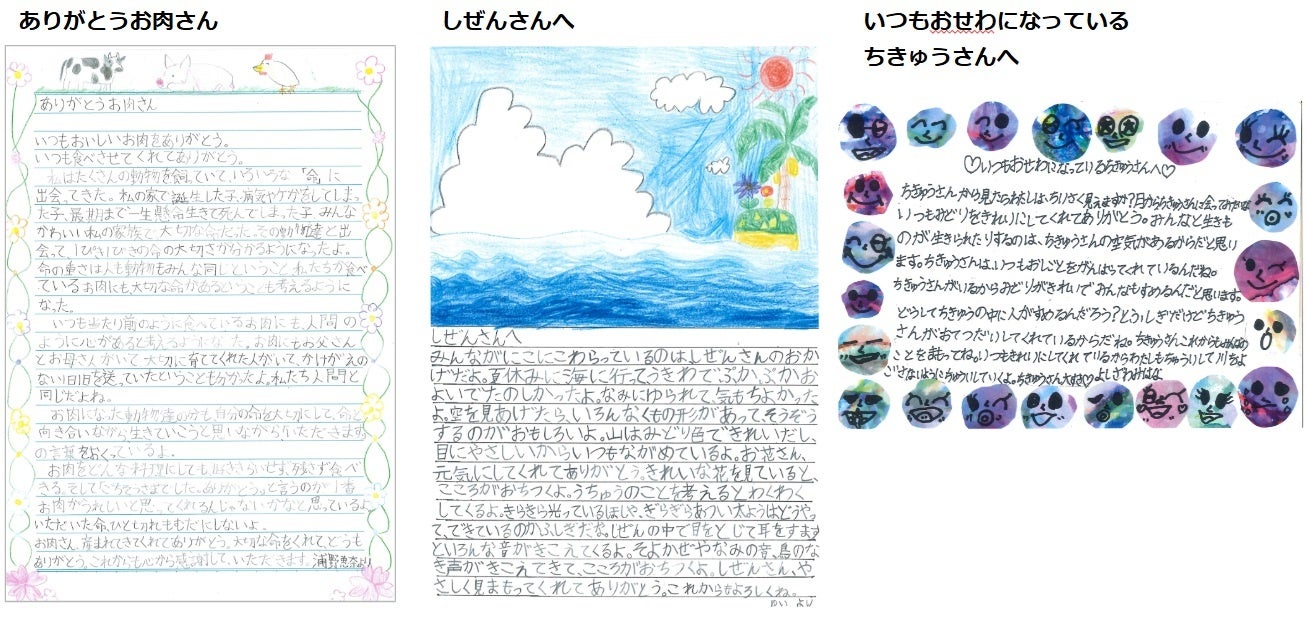 昨今のこどもたちの作品は、身近な人への感謝だけでなく、自然や環境、住みやすい街などへと対象が広がっています。これらを背景に、本年より「SDGs賞」を新設しました。今年のSDGs賞受賞作品は、「ありがとうお肉さん」「ちきゅうさんへ」「しぜんさんへ」など、日々の暮らしの中で当たり前にSDGsを感じていると想像できる作品が多数ありました。いずれも、こどもたちならではの豊かな思考力と表現力に加え、将来がより良い社会になると予感されるような想いが込められています。
