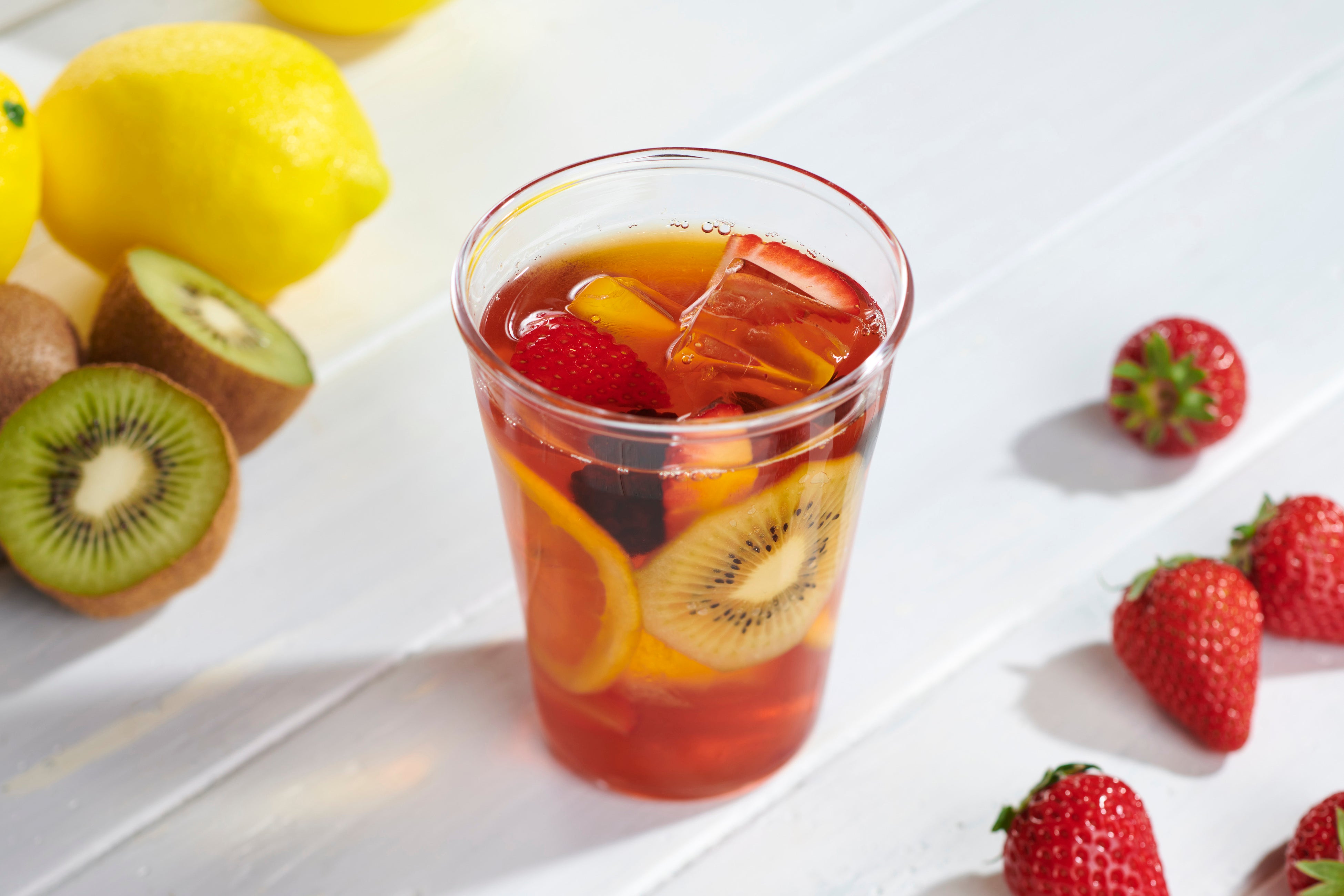 話題のルイボスティーに、レモン・キウイ・ミックスベリー・イチゴを加えた