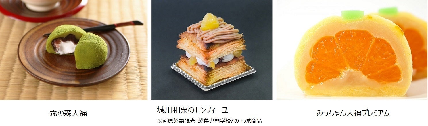 スイーツの素材となる愛媛県産農産物を活用した「えひめスイーツ」を、各フェア等を通じて県内外に広くPRすることにより、県産農産物のブランド化や販路拡大をはかるもの。生産者、地元事業者、県内製菓専門学校の学生等との農商工連携による商品開発に取り組んでいます。(首都圏エリア初出店)