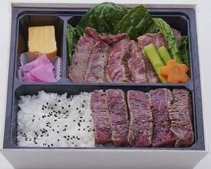ボリューム、味、ともに大満足!和牛のサーロイン120gと、和牛ももステーキ120gを載せた肉三昧のお弁当。