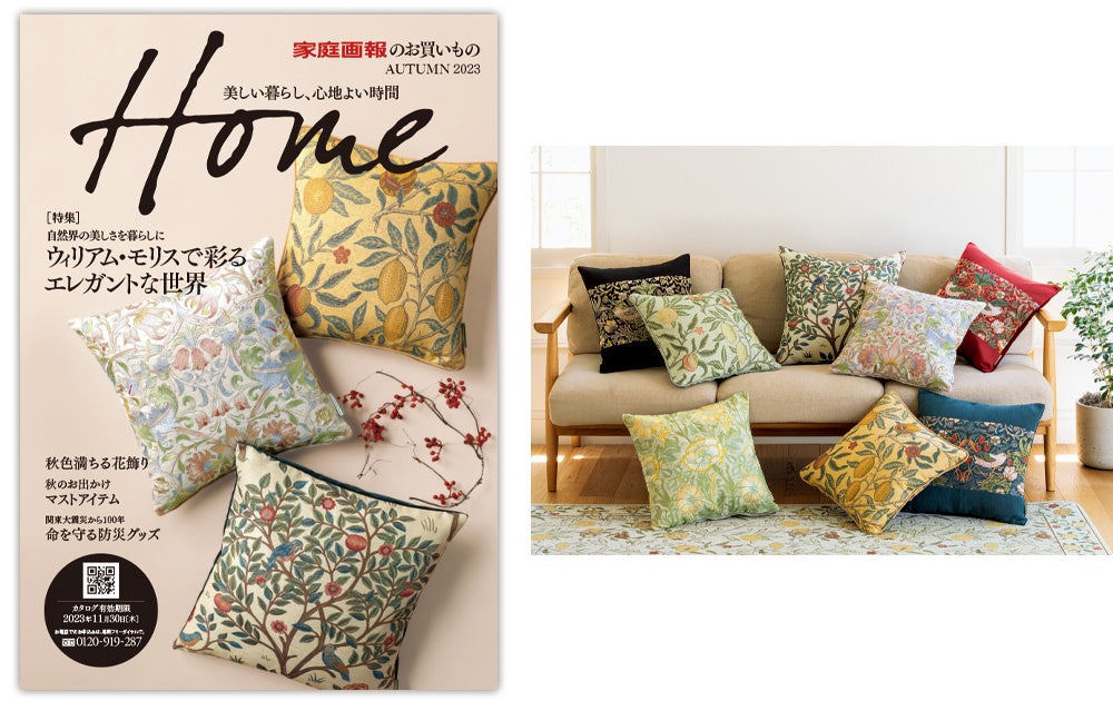 美しい暮らし、心地よい時間をつくるためのいいものを取り揃えたインテリアカタログ『Home』(旧:家庭画報リビング)。この秋にふさわしいファブリックや花飾りのほか、レジャーなどのお出かけマストアイテム、防災グッズなど多様に紹介しています。