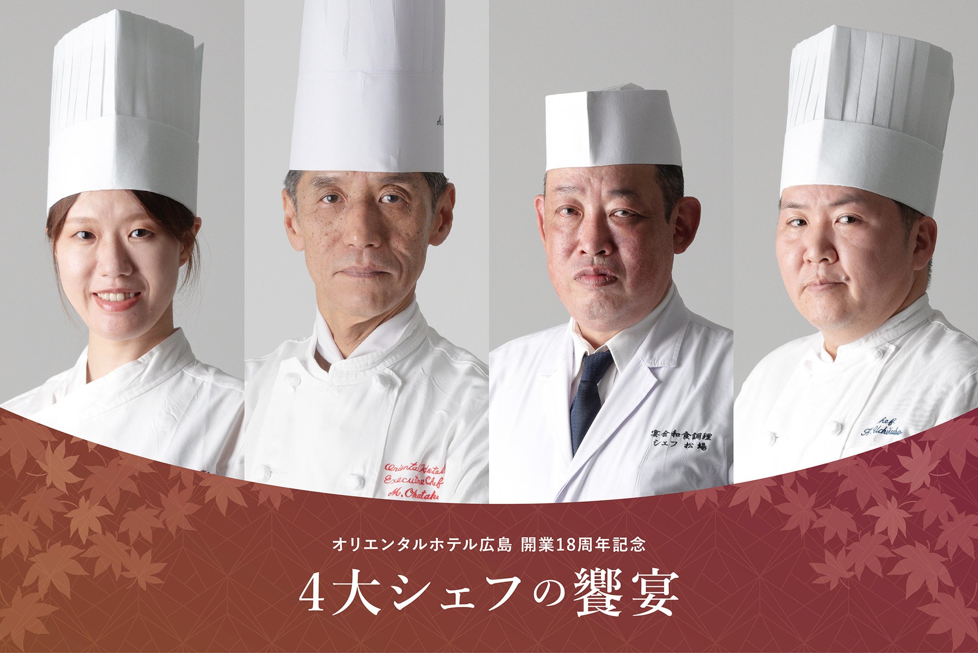 オリエンタルホテル広島(所在地:広島市中区田中町6-10)では、本年10月に迎える開業18周年を記念してスペシャルディナーイベント「4大シェフの饗宴」を2024年10月1日(火)に開催します。