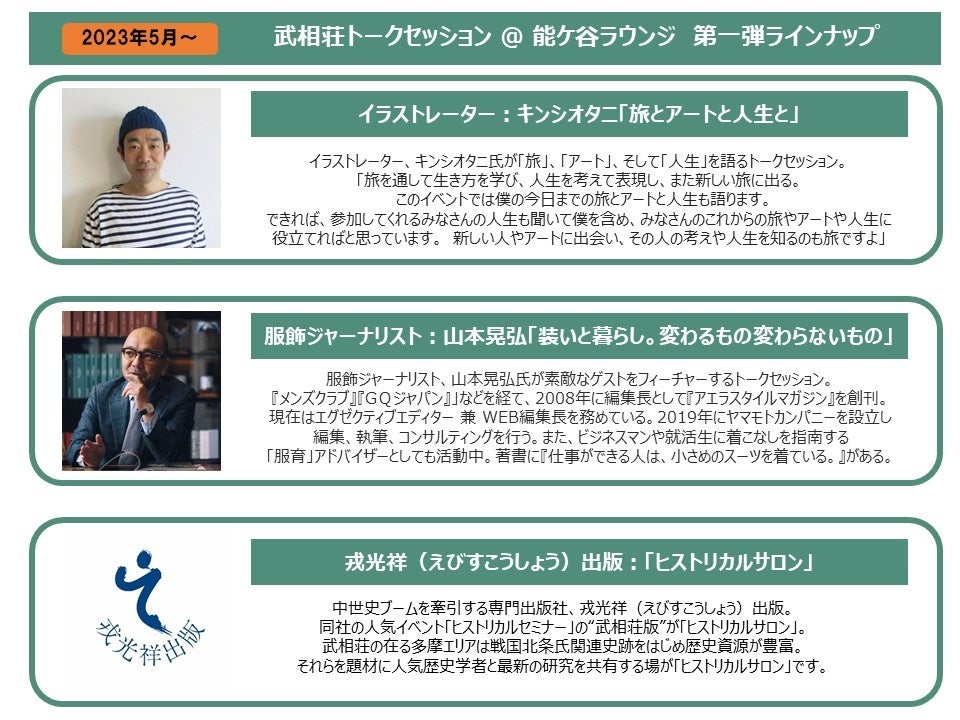 - トークセッションラインナップ 場所:武相荘内 能ケ谷ラウンジ