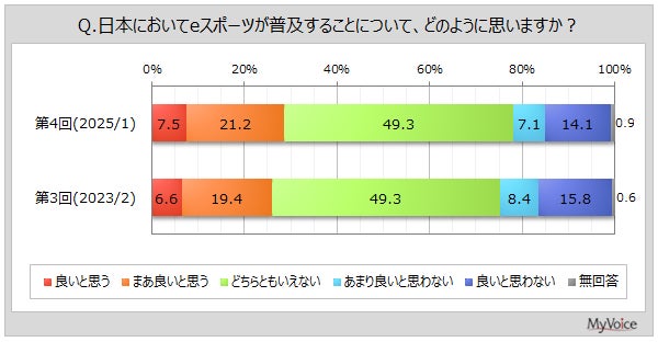 日本においてeスポーツが普及することについて、どのように思うかを聞きました。