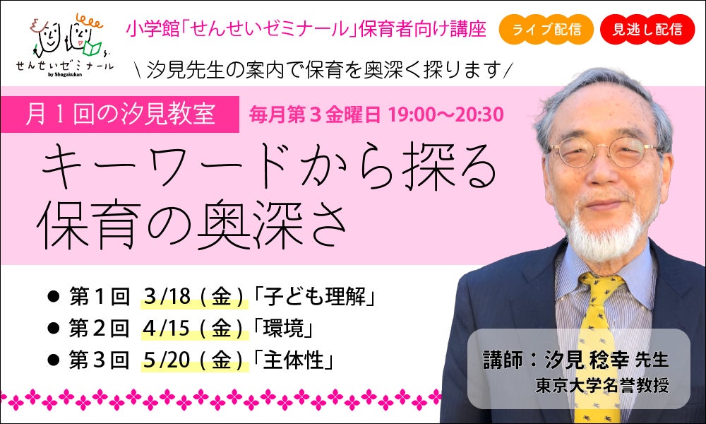 小学館【せんせいゼミナール】キーワードから探る保育の奥深さ〈第1回テーマ:子ども理解〉講師:汐見稔幸先生 3月18日開講 申込受付中!