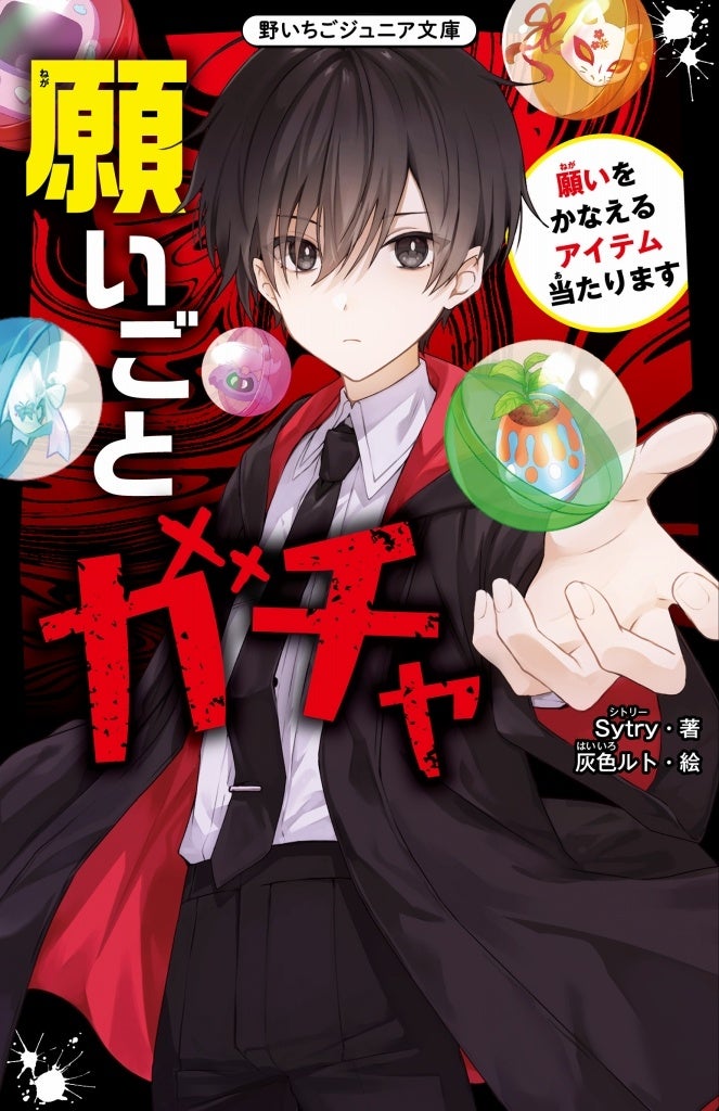 【あらすじ】 願いがある人の前にだけ現れる「願いごとガチャ」。コインを1枚入れてまわすと、願いを叶えるアイテムが必ず当たるらしい。厳しい母親にうんざりしていた小6のこごみは、ある時、全身真っ黒な美少年・緋衣くんに出会って願いごとガチャをまわすことに。“家族入れ替えゲーム”を引き当て、早速友達と自分の母親を交換するけれど、思わぬ事件が起きて…!? 願いが叶うガチャをまわしたら、待っているのは驚きの結末! ゾクゾクな8つの短編集!