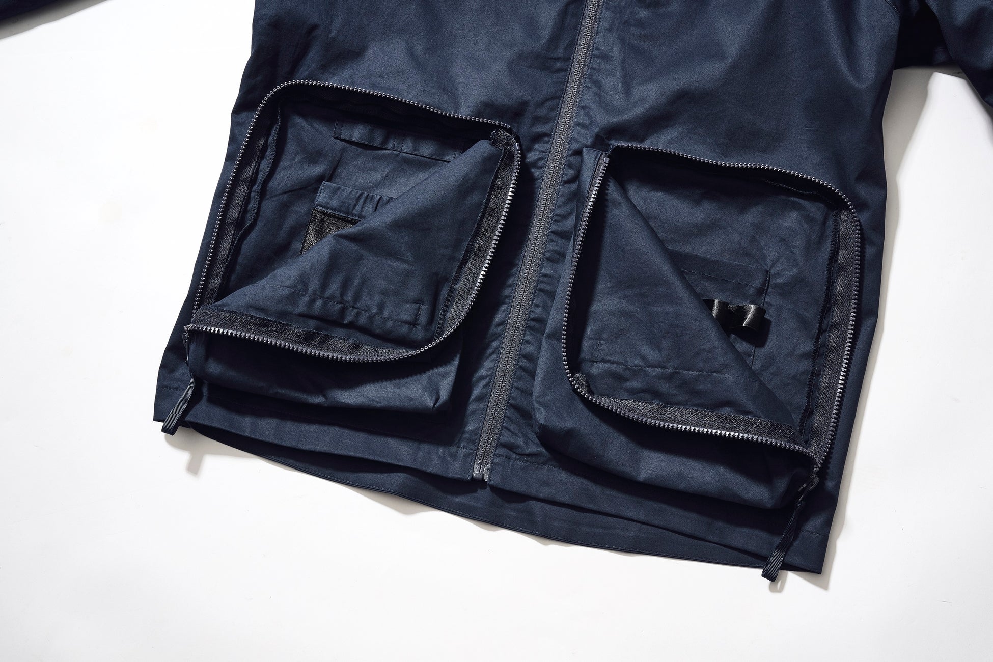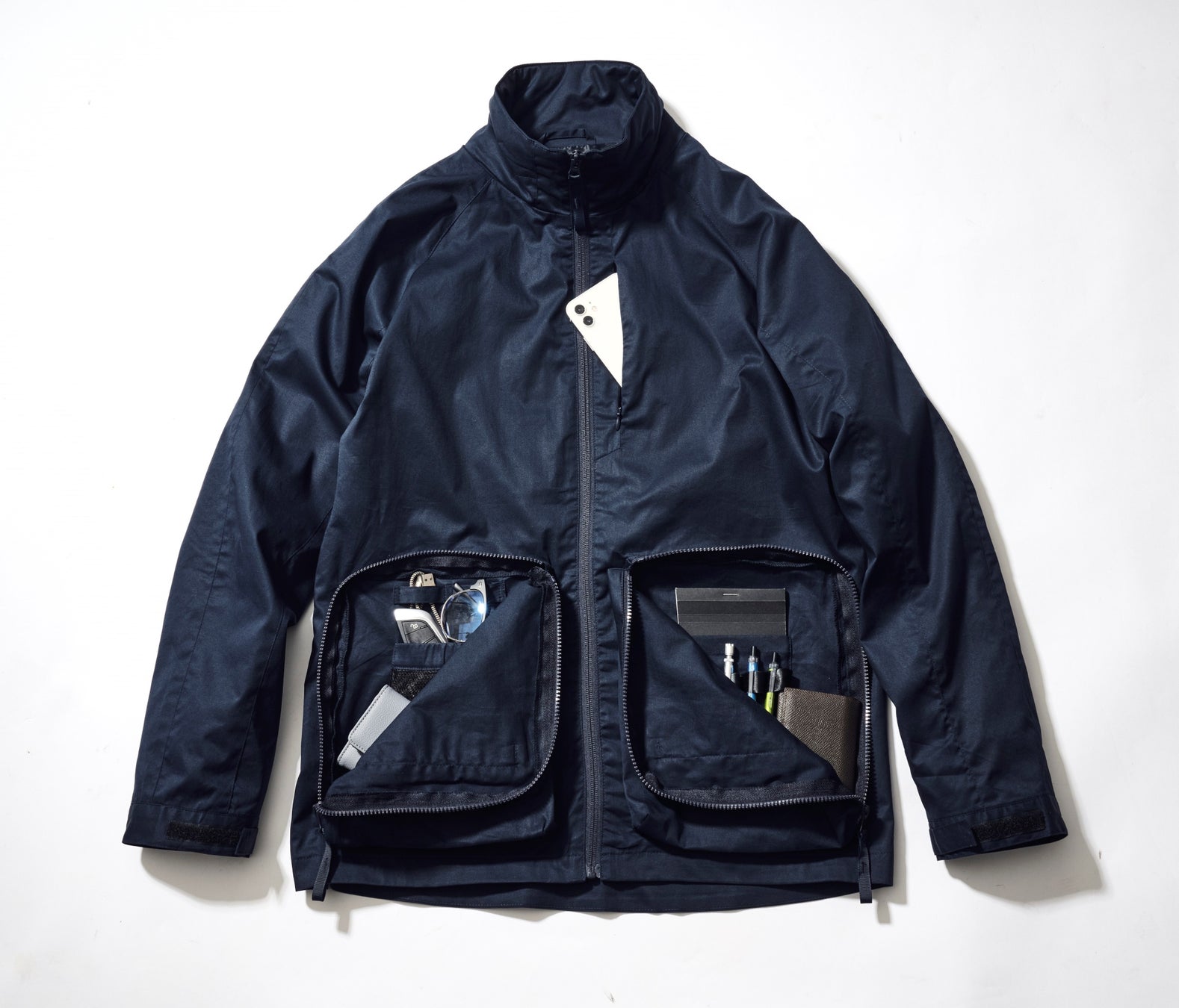 裏表で8つのポケットをつけた軽量アウター。ものを入れたときの重さのバランスも考え抜きました。
