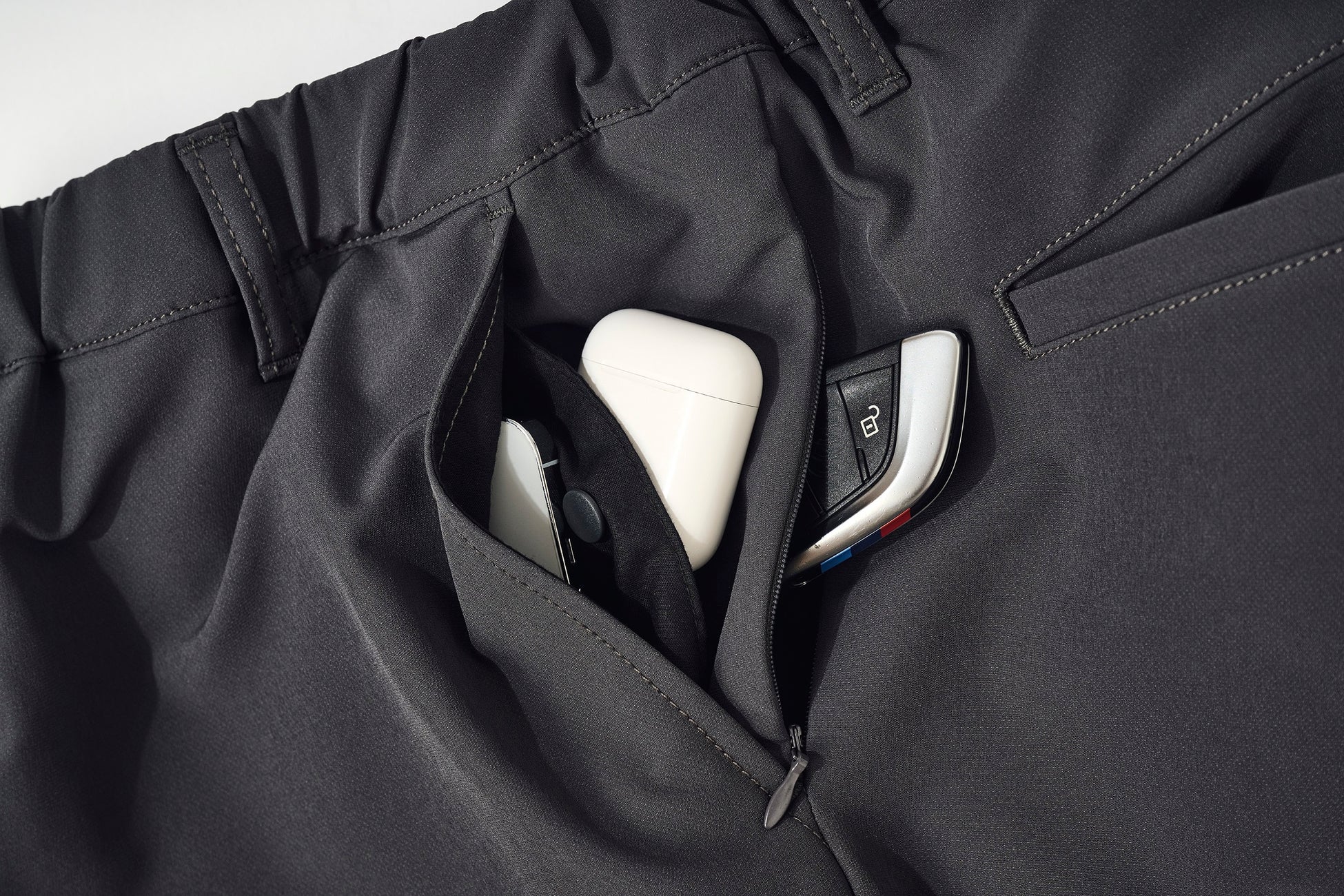 「ちょっとそこまで手ぶらで買い物に行けたらいいのに…」「ポケットが多いとシルエットが野暮ったくなる…」