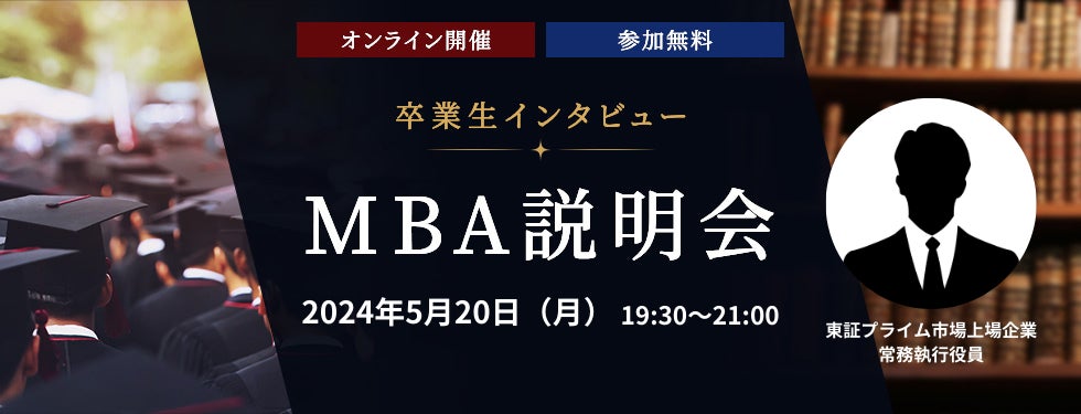 人生100年時代を迎え、キャリアにおける「マルチステージの人生」と「幅広い選択肢」が浸透しています。同時に、テクノロジーの進化により企業活動の可能性や自由度が激変し、組織の力を最大限に生かすマネジメント力やコラボレーション力、経営スキルも重要視されています。この背景から、MBAの学習ニーズが高まり、文部科学省が発表した系統別在籍者数から推定すると、日本では年間約2,500人がMBAを取得しています。この度、当社では、MBAをお考えの方あるいはスキルアップを目指す方を対象に、リアルな声を聴ける場として、本イベントを開催いたします。