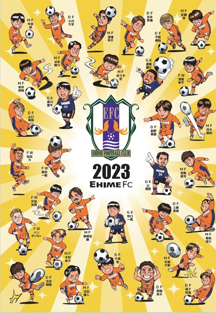 愛媛県出身の漫画家・能田達規氏による愛媛FCマスコットキャラクターと、愛媛FC選手、愛媛FCレディース選手のイラスト入りオリジナル下敷きを先着5,000名様に提供