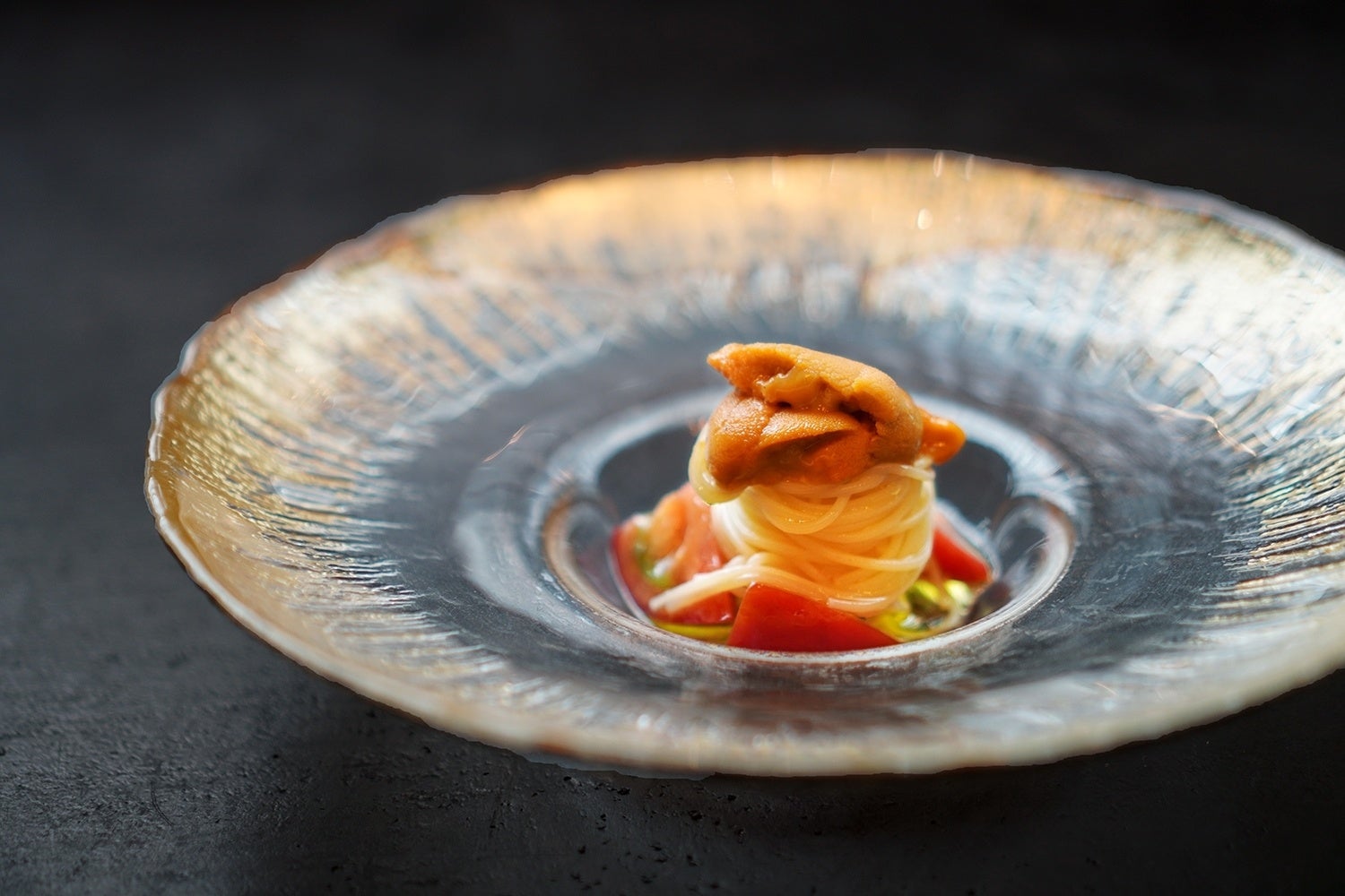 瑞々しく甘さ際立つシャインマスカットとミネラリーなシャンパーニュのマリアージュから始まり、雲丹専用のカリフォルニアワイン、夏限定の日本酒、世界中のワインや日本酒などを取り入れ、型にとらわれないソムリエ厳選のラインナップをご用意しております。