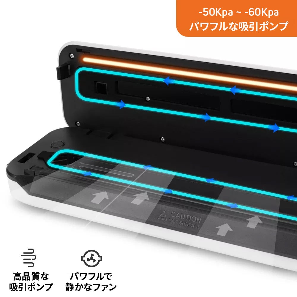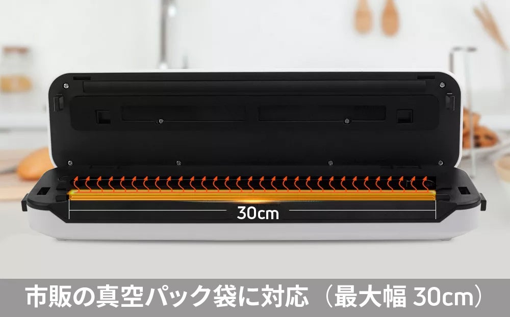 乾燥した食品・水分を含む食品の両方に対応/ワンタッチ操作/安全自動停止機能/幅30cmまでの真空パック袋に対応