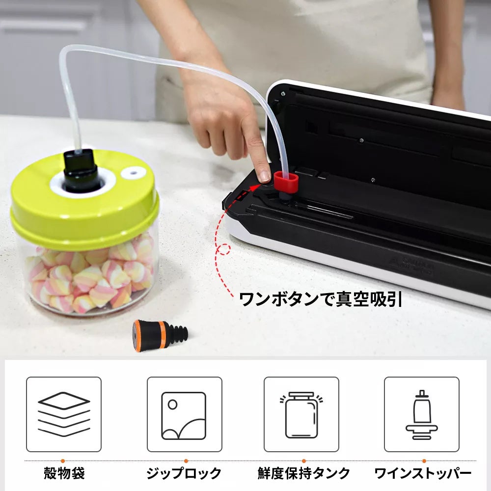 また、真空ホースを接続することで、ワインストッパー、真空容器、ジッパーなどの吸引にも対応。