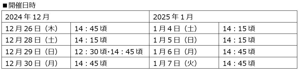 明治神宮外苑アイススケート場では、ファミリーマート明治神宮外苑/S店の開店を記念し、2024年12月26日(木)から「冬休みフィギュアスケートエキシビション2024-2025 Winter Holiday Figure Skating Exhibition」を開催いたします。