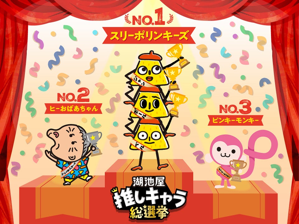 株式会社湖池屋(社長:佐藤章)は、ファンサイト「湖池屋GOGO!ランド」のオープンを記念し、第1回「湖池屋推しキャラ総選挙」を2026年2月16日~3月8日まで実施しました。「湖池屋GOGO!ランド」内にて、約7,500件ものご投票をいただいた結果、最も推された湖池屋キャラクターは「スリーポリンキーズ」に決定しました。