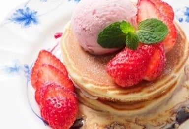 〈喫茶トリコロール〉いちごとマスカルポーネクリームのホットケーキ(1食) 1,000円/本館4階
