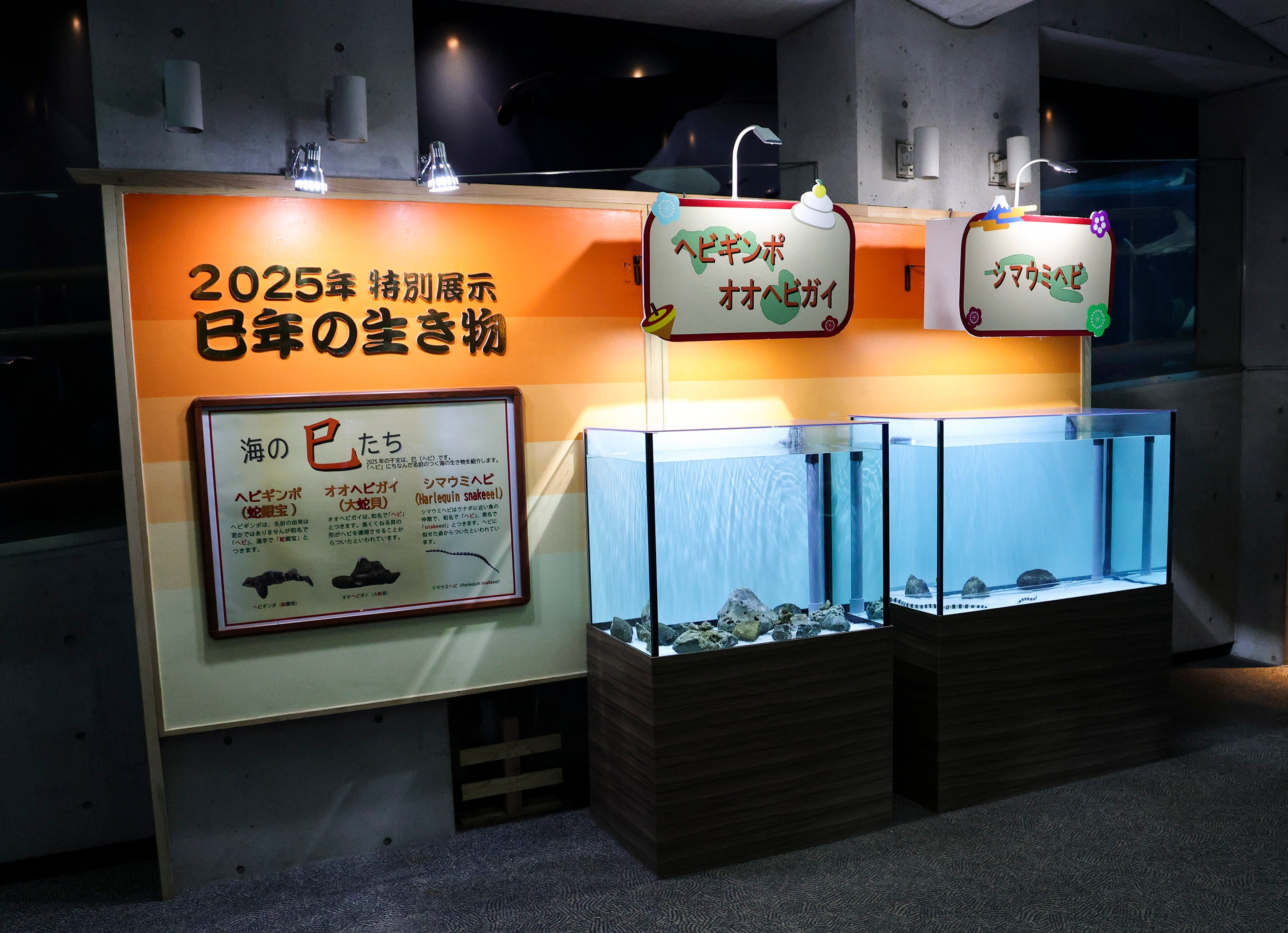 なぜ「ヘビ」にちなんだ名前が付けられたのか、生物を目の前に、その由来を思い浮かべながら、じっくりと観察してみてはいかがでしょうか。2025年干支展示の詳細は下記の通りです。