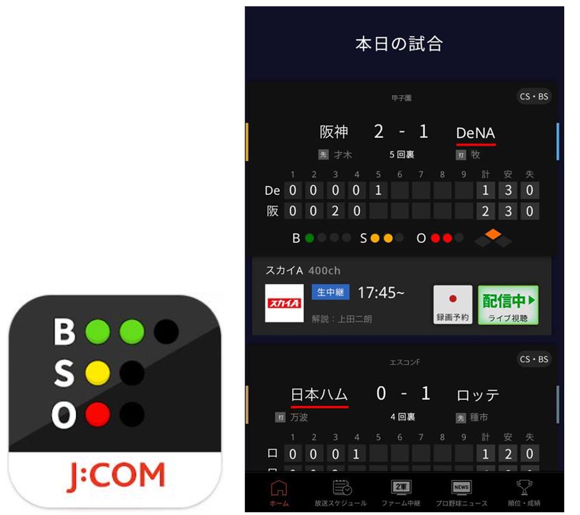 ▼「J:COMプロ野球アプリ」でスマホ・タブレット視聴&詳しい情報がわかる