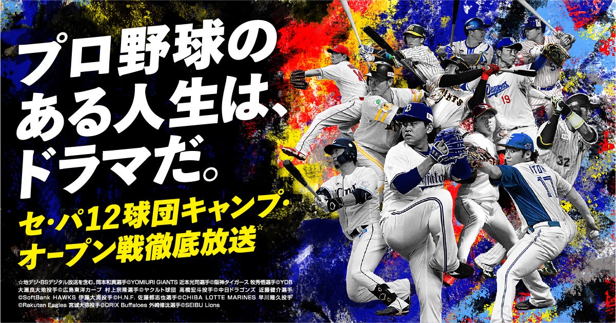 JCOM株式会社(J:COM、本社:東京都千代田区、代表取締役社長:岩木 陽一)は、2025年3月28日(金)に開幕するプロ野球セントラル・リーグ、パシフィック・リーグ12球団が行う公式戦を生中継*2で徹底放送します。ライブ配信*3も行いますので、外出先や球場でもスマートフォン、タブレット、パソコンでお楽しみいただけます。
