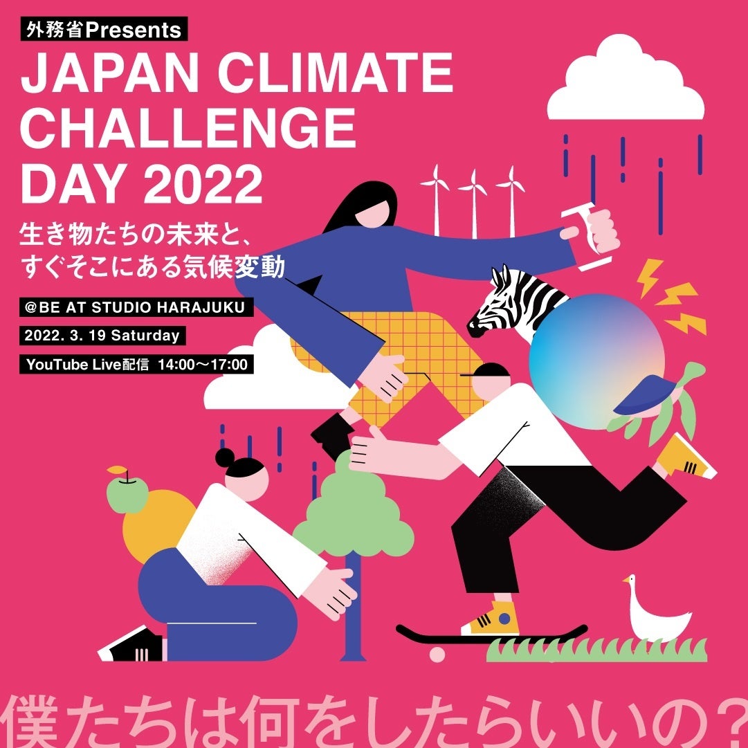 「Japan Climate Challenge Day 2022」と題したこのイベントは、外務省が主催する、令和3年度「アジア・大洋州における気候変動と脆弱性に関する国際会議」として、学術的なアプローチのみならず、わかりやすさと知る楽しさをもって、Z世代が気候変動問題を身近に感じられることを目指して開催いたします。