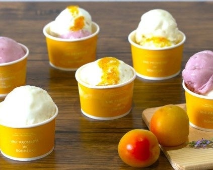 完熟フルーツ・ジェラート〈 藤稔ブドウソル ベ 、マスカルポーネはっさくピール、紀州南高梅ソルベ [阪神梅田本店限定] (シングル)各450円 (ダブル、 2種のフレーバー)各501円