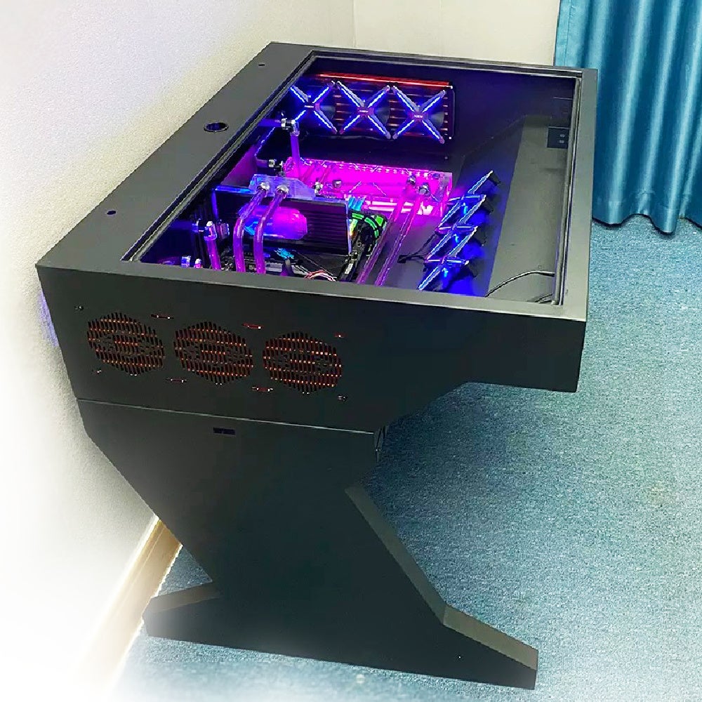 ゲーミングPCをクリアな美しいガラスケースに収納して、スケルトン構造で管理ができます。