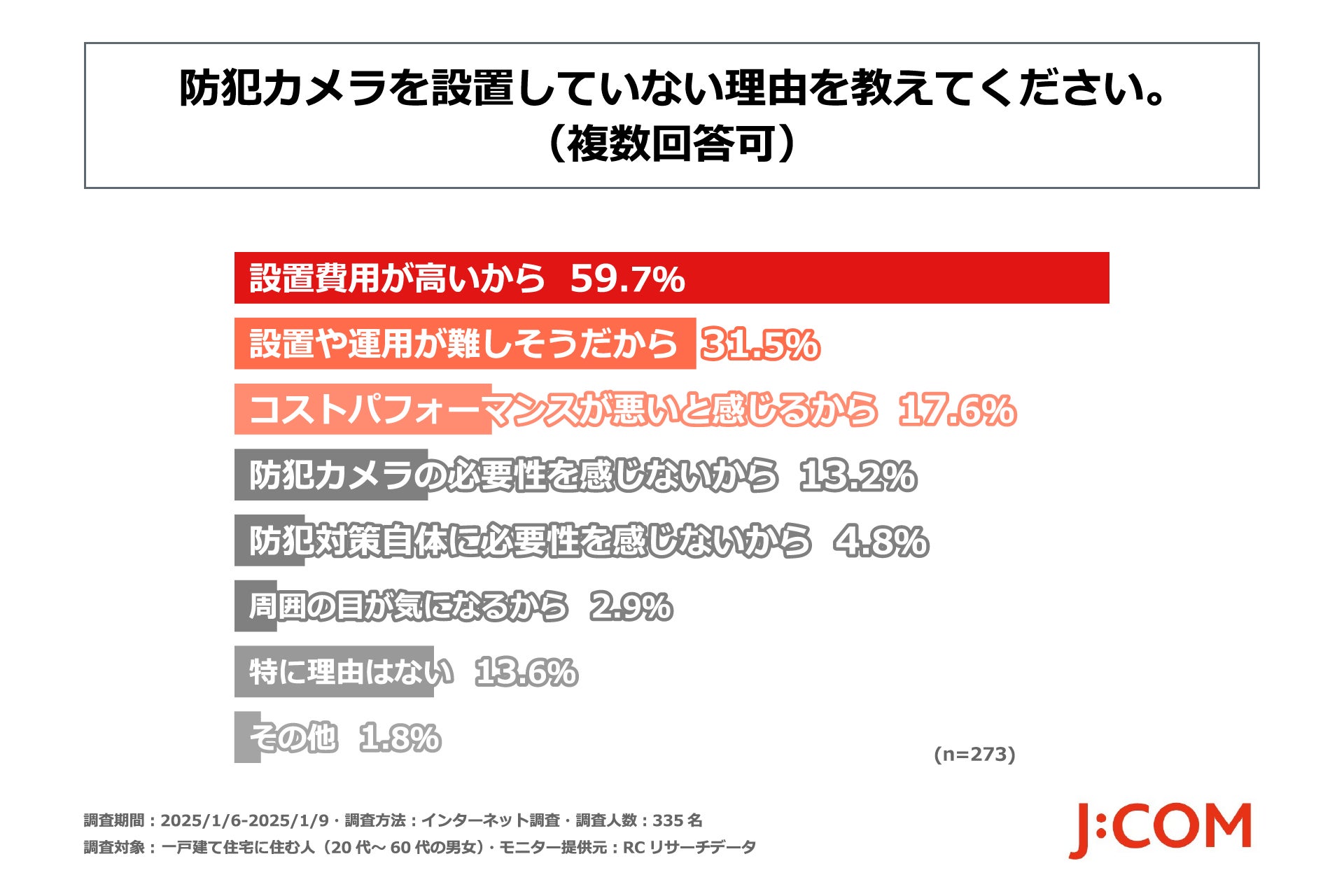 自宅に防犯カメラを設置していない理由の第1位は「設置費用が高いから」
