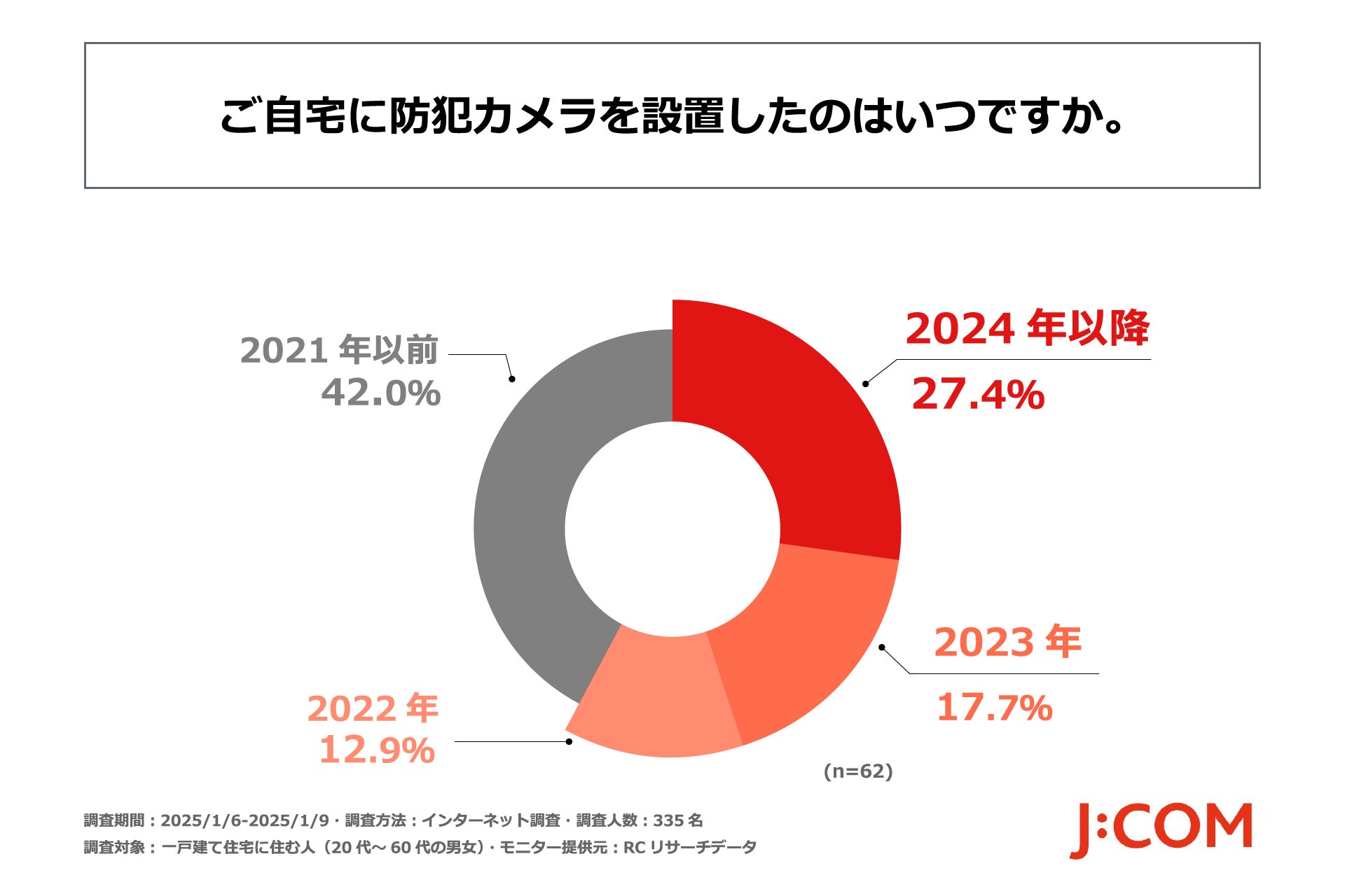 自宅に防犯カメラを設置している人の約6割が2022年以降に防犯カメラを設置している