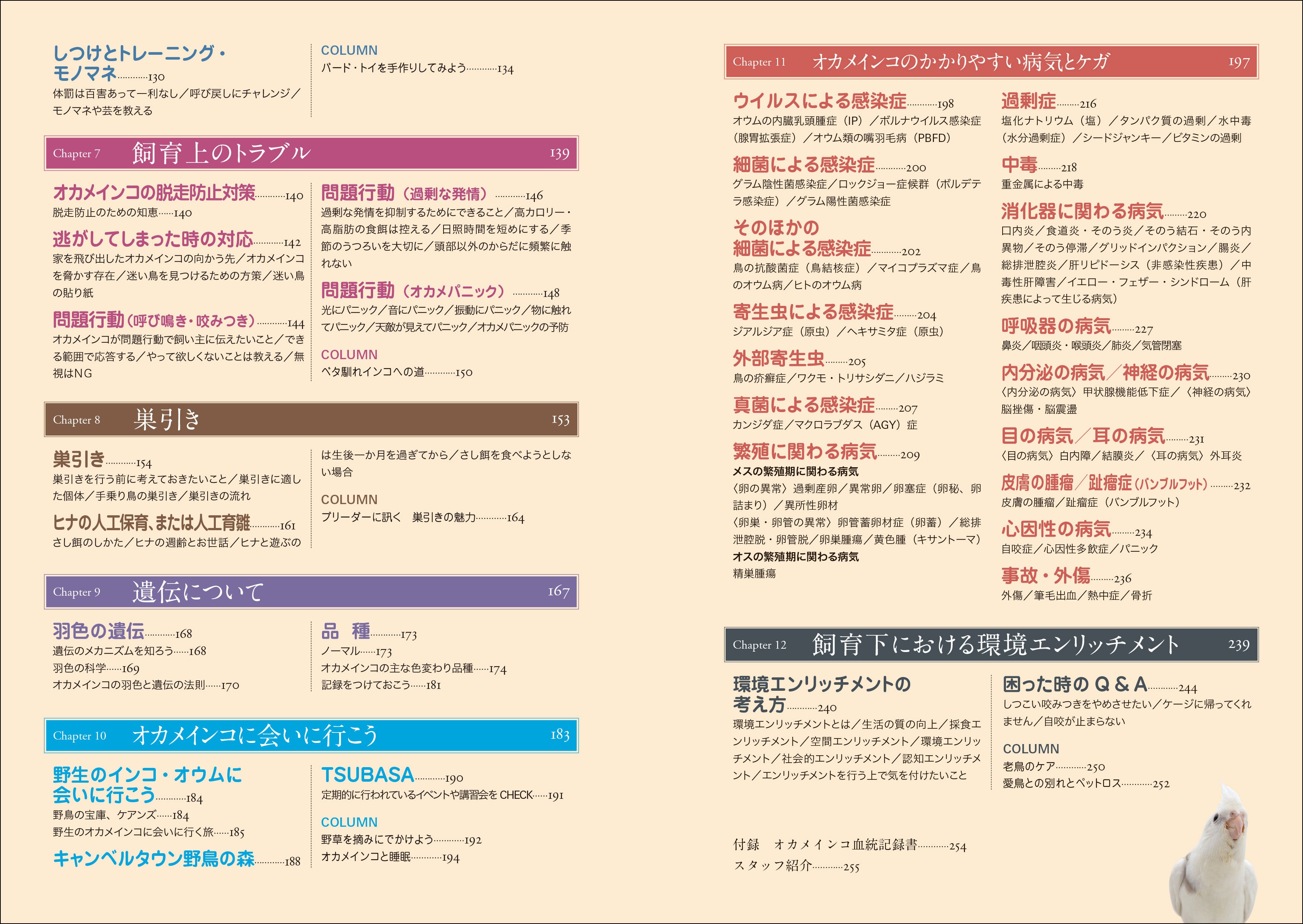 本書は2015年8月小社より初版刊行「オカメインコ完全飼育」の増補改訂版です。増補改訂にあたり、医療と健康管理について大幅に加筆しています。