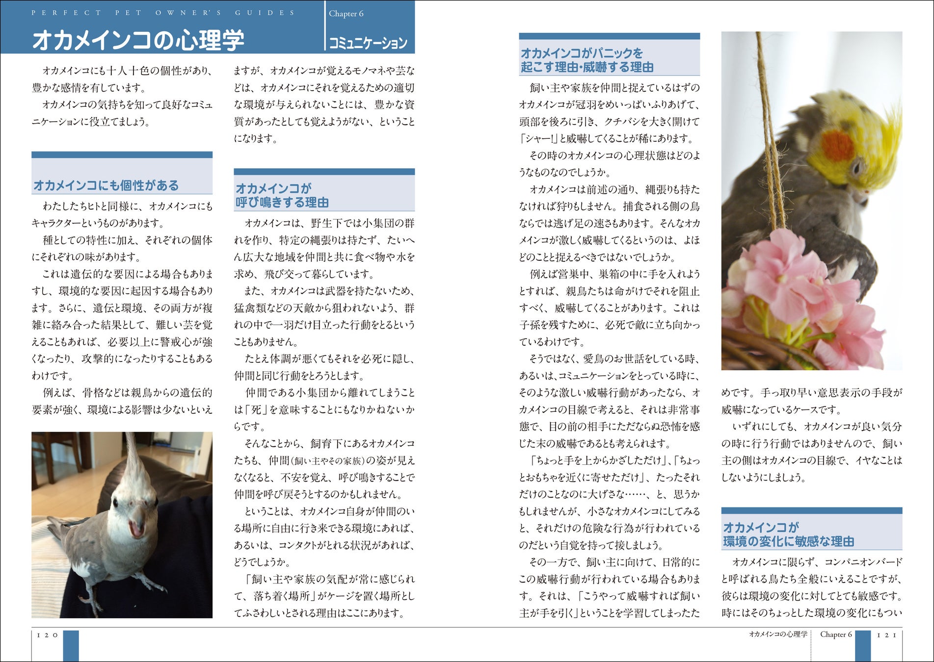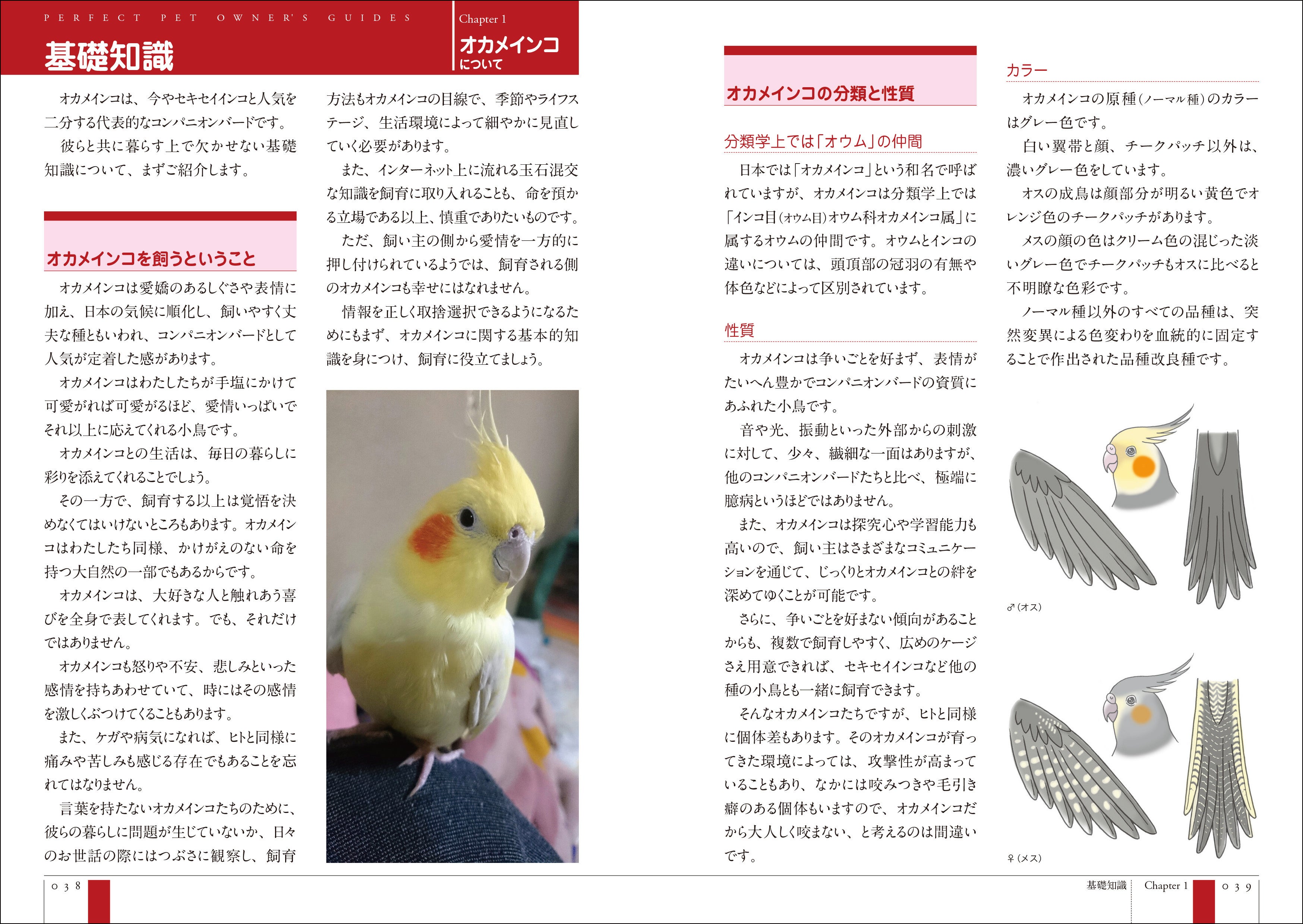 また、オカメインコの問題行動への対処方法などQ&A方式でわかりやすく解説しています。