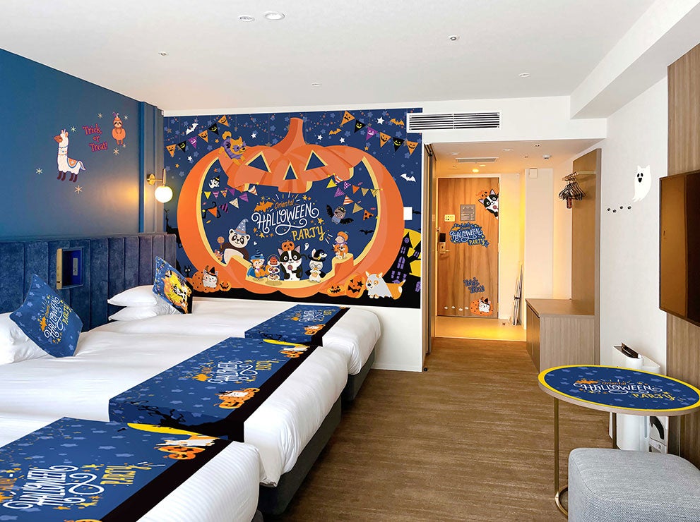 ちょっぴり大人可愛いスタイリッシュなテイストのハロウィーン装飾を客室の随所に採用し、“映え”ルームに。