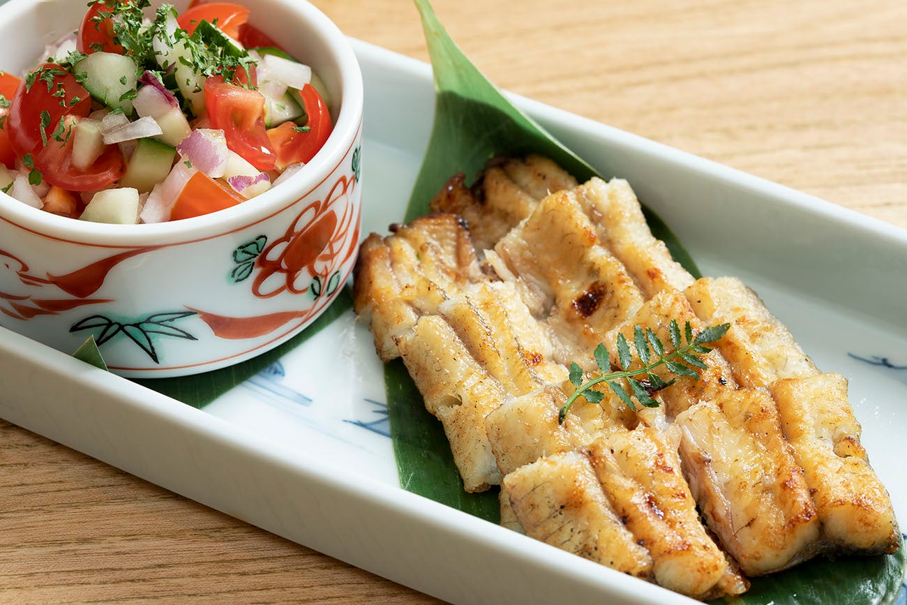 うなぎの白焼きに「心斎橋のはちみつ」を使ったサルサソースを添えてご提供。はちみつの濃厚な甘みにサルサのピリッとした辛みが調和し、暑さの残るこの時期にぴったりです。