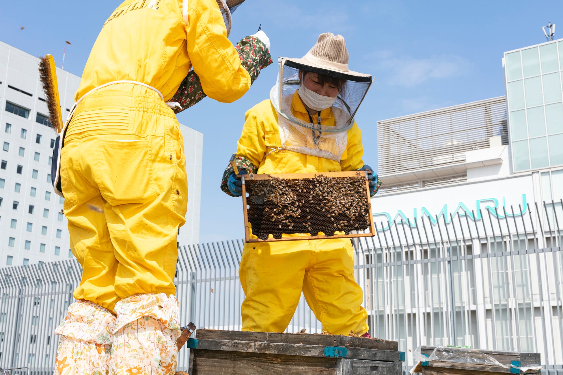 「都市養蜂」とは都心のビルの屋上などを活用しミツバチを飼育し、はちみつを採蜜することです。 都心でミツバチを飼うことは、<生態系の循環>=生き物のつながりを持続できる大事な役割を担います。まさにSDGsの11番「住み続けられるまちづくりを」と15番「陸の豊かさも守ろう」というゴールにもつながります。また都市養蜂を地域に認知してもらうことで、地域に花(緑化)が必要だと認識していただけるチャンスがうまれます。例えば今後はボランティアを募り、大丸心斎橋店の周りから心斎橋の街へ広げる緑化活動を行うなど、植栽化を進めることで地域の美化も目指すことができます。