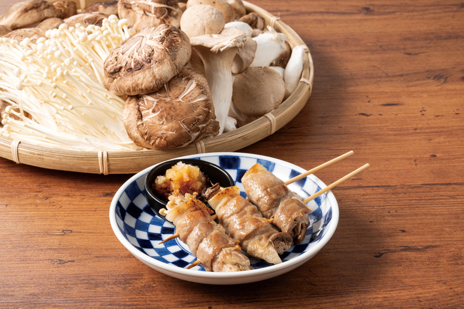 くわえて旬を迎えた野菜を使った料理も充実しています。とろりとした食感と旨みが楽しめる秋ナスを使った串料理や、香り豊かなエリンギ・エノキ・どんこ椎茸を取り入れたおつまみは、秋の味覚を堪能できる一皿に仕上げました。
