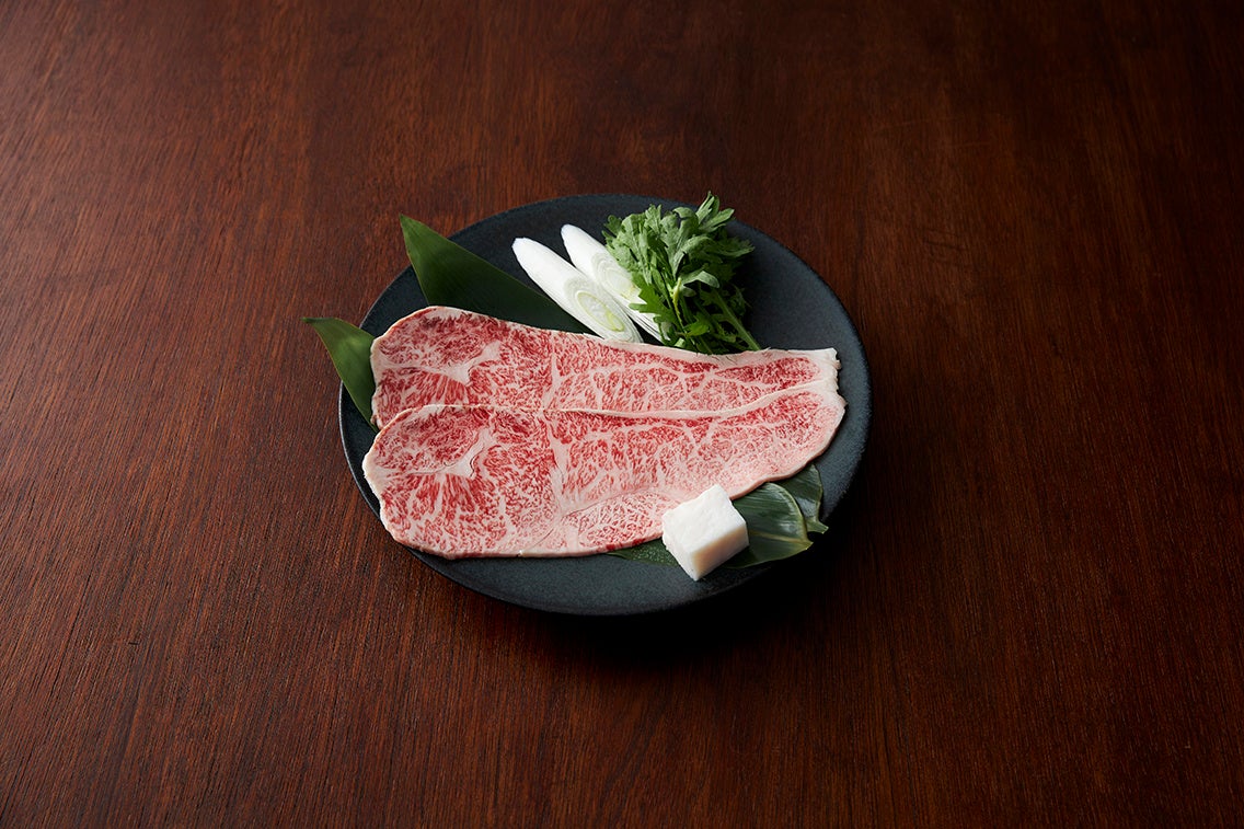 お肉の部位は希少な特選リブロースとなります。お肉の種類は〈山形黒毛和牛〉と〈松阪牛〉の2種類をご用意しています。「山形黒毛和牛焼きすき」は、山形黒毛和牛2枚(120g)税込5,280円、「松阪牛焼きすき」は、松阪牛2枚(120g)税込み7,480円です。また、追加でお肉の注文も承っています。追加の場合は、山形黒毛和牛1枚で税込み2,200円、松阪牛1枚で税込み3,300円です。(1枚あたり60g)ディナーの時間帯のみのご提供となります。単品の追加メニューとなりますので通常のコースメニューを一緒にご注文ください。