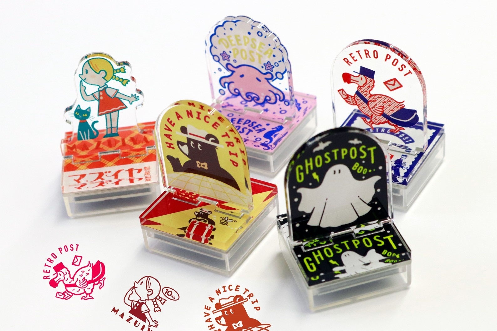 使わない時はアクリルスタンドとして飾っていても絵になる浸透印タイプのスタンプ。