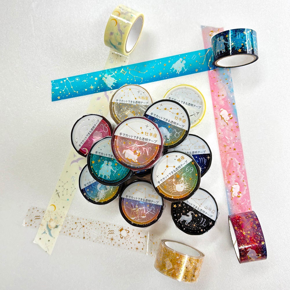 幻想的な12星座をモチーフにした、手で切れる透明度の高いクリアテープ。