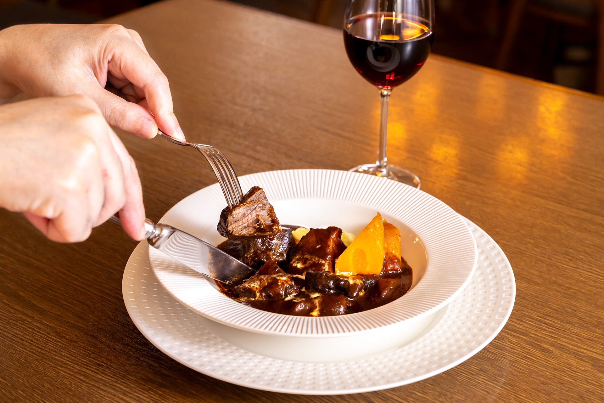 濃厚な旨味の神戸牛を、時間をかけてじっくり煮込みました。
