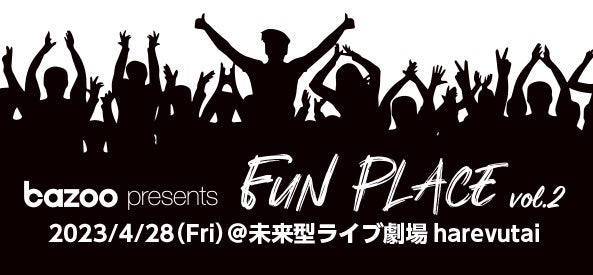 bazoo presents FUN PLACEは、多くの方が様々なアーティストの音楽を楽しんでいただける場=“Fun Place”を作っていきたいという想いのもと、PCI MUSICやbazooからリリースのあるアーティストをピックアップし、ライブハウスがみんなの遊び場となるようなイベントとして開催しているイベントである。