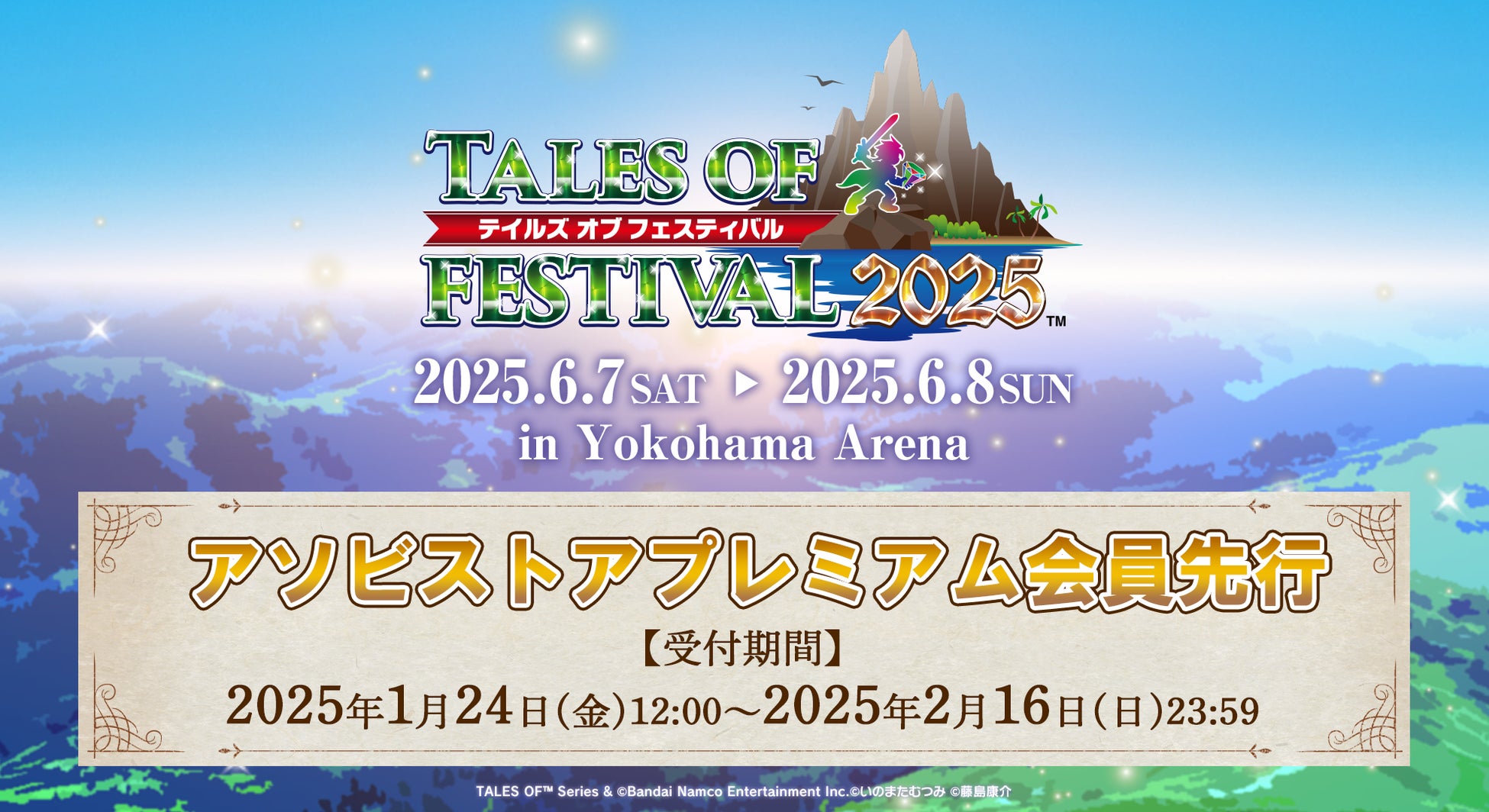株式会社バンダイナムコエンターテインメントは、『テイルズ オブ』シリーズのファンイベント「テイルズ オブ フェスティバル 2025」を2025年6月7日(土)・8日(日)の2日間、横浜アリーナ (神奈川県横浜市)にて開催いたします。