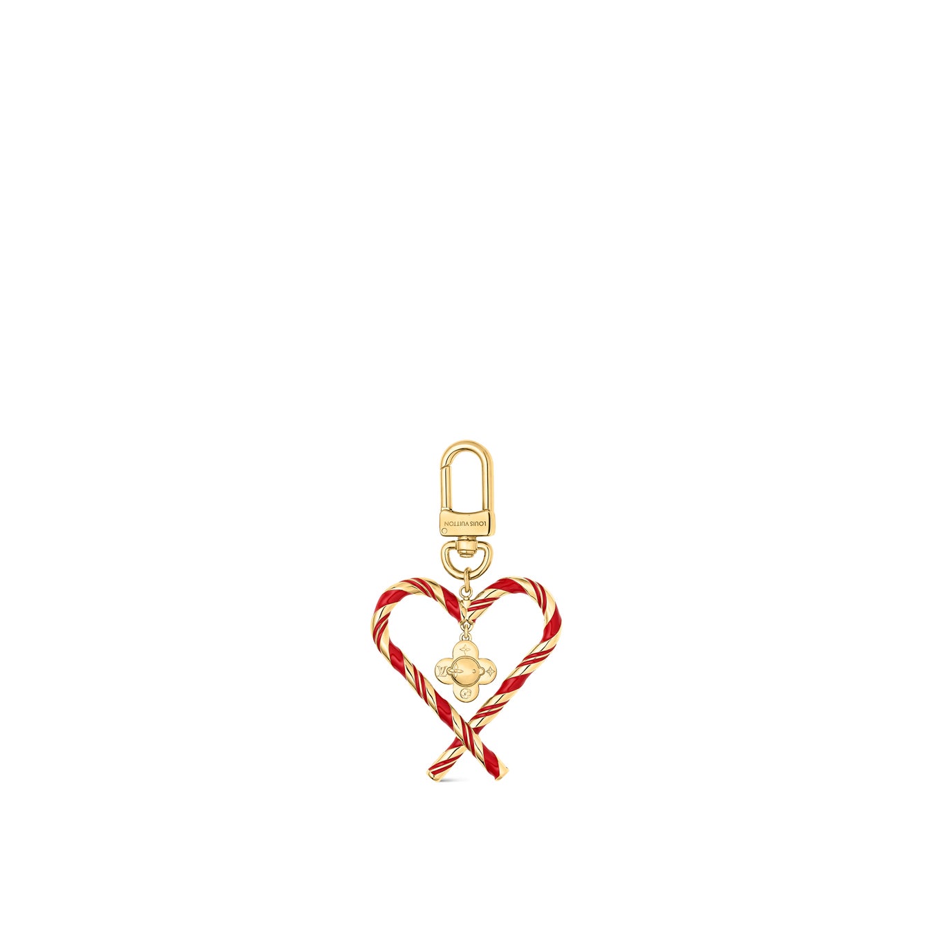 魅惑的なクリスマススイーツの世界に佇むメゾン人気のマスコットをイメージした「バッグチャーム·ヴィヴィエンヌ キャンディケイン」。ゴールドカラーのメタルでモノグラム·フラワーの花びらを想わせる「ヴィヴィエンヌ」の愛らしい顔を象り、ゴールドカラーとレッドを組み合わせたハート型のキャンディケインの中央にあしらいました。お気に入りのバッグにオリジナルな遊び心を添えるアイテムです。